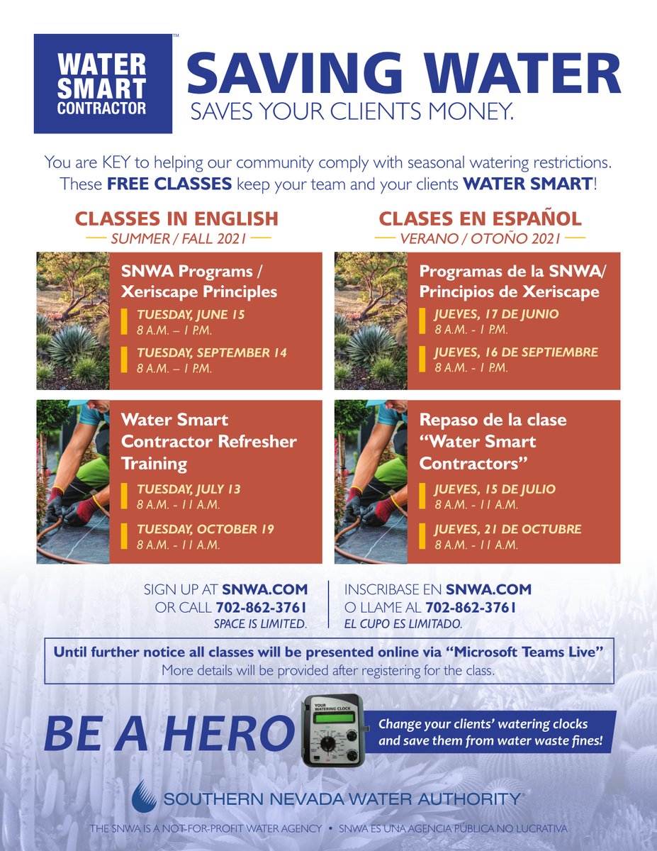 Las clases se van a dar sin costo y van a proveer un certificado de Water Smart Contractor, además de estar disponibles en inglés y en español.